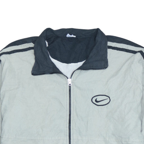 Nike Grey Navy Windbreaker Jacket Men's XLarge Embroidered Swoosh Stripe Sleeves Zip Track Top