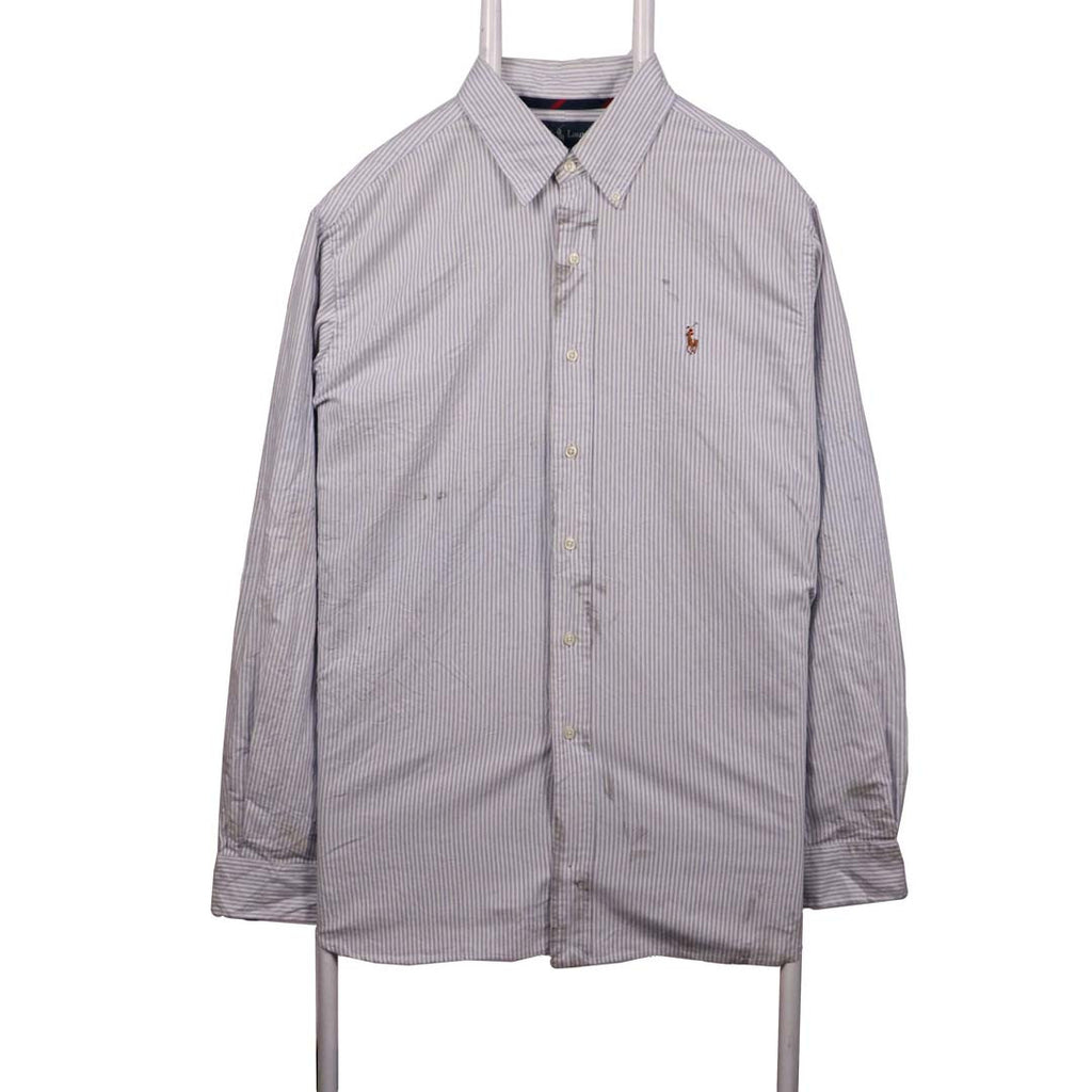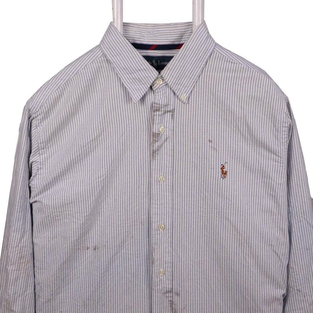 Polo Ralph Lauren 90's Blue Striped Long Sleeve Shirt Large VTG