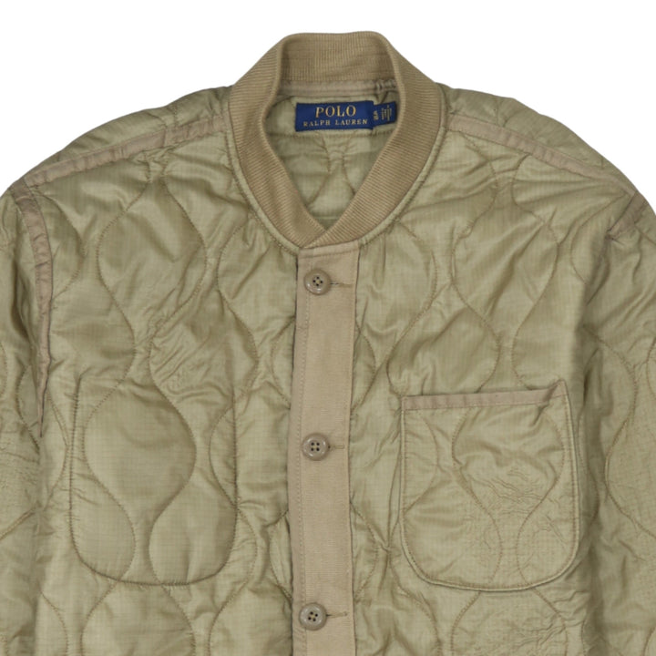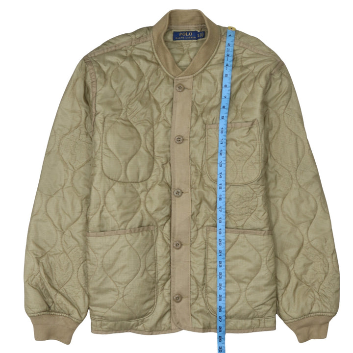 Polo Ralph Lauren Beige Quilted Jacket Women's XLarge Button Front Pockets Lightweight Outerwear