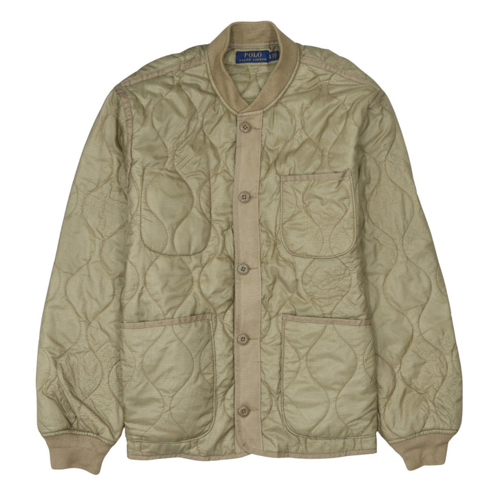 A classic Polo Ralph Lauren quilted jacket in a versatile beige cream shade, ideal for layering across seasons. The lightweight quilted shell offers warmth without bulk, while the ribbed trims and button front keep the look clean and timeless. Easy to throw on over tees, knits or shirts for an effortless everyday outerwear option.