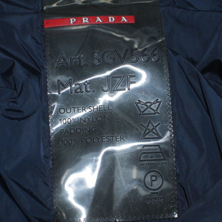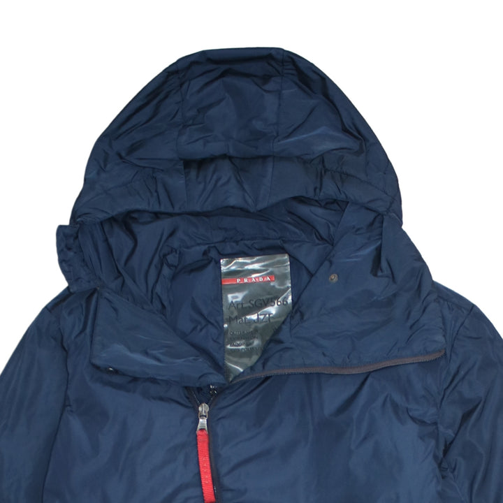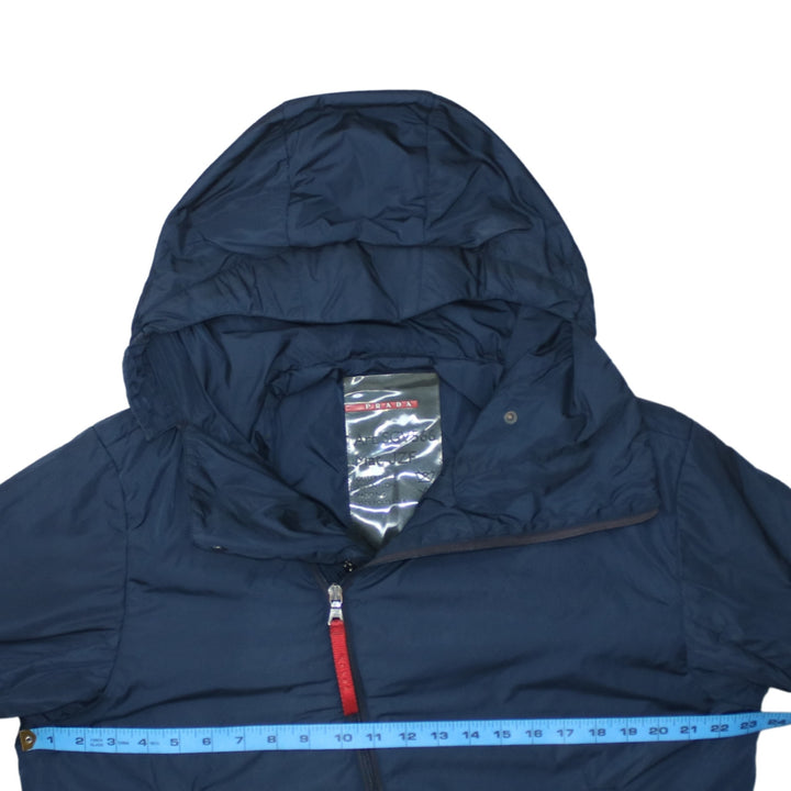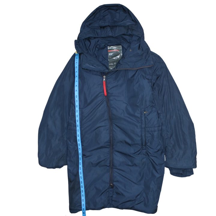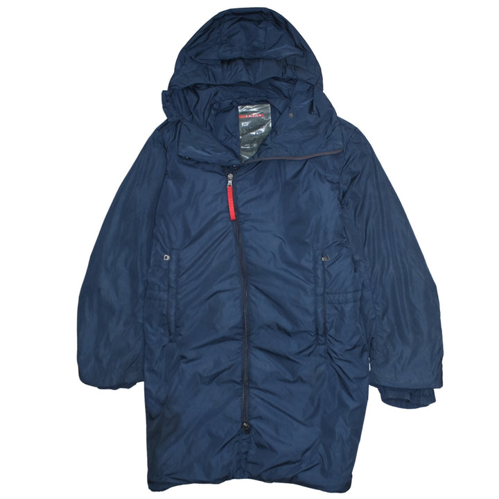 Prada Navy Blue Hooded Coat Men's Medium Full Zip Pockets Long Puffer Parka Jacket