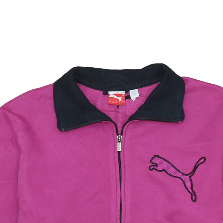 Puma Pink Full Zip Sweatshirt Women’s Large Embroidered Logo Stand Collar Track Top