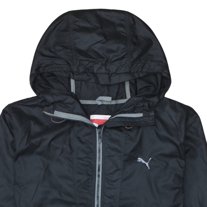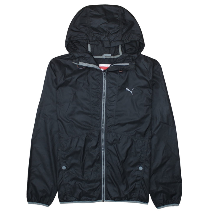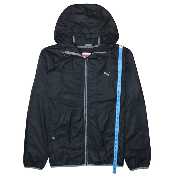 Puma Black Hooded Windbreaker Men's Large Full Zip Embroidered Logo Lightweight Jacket
