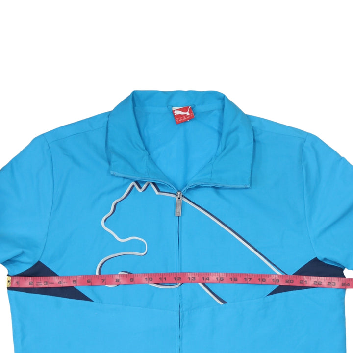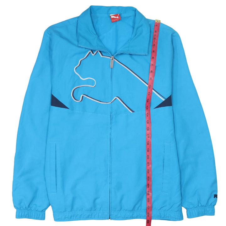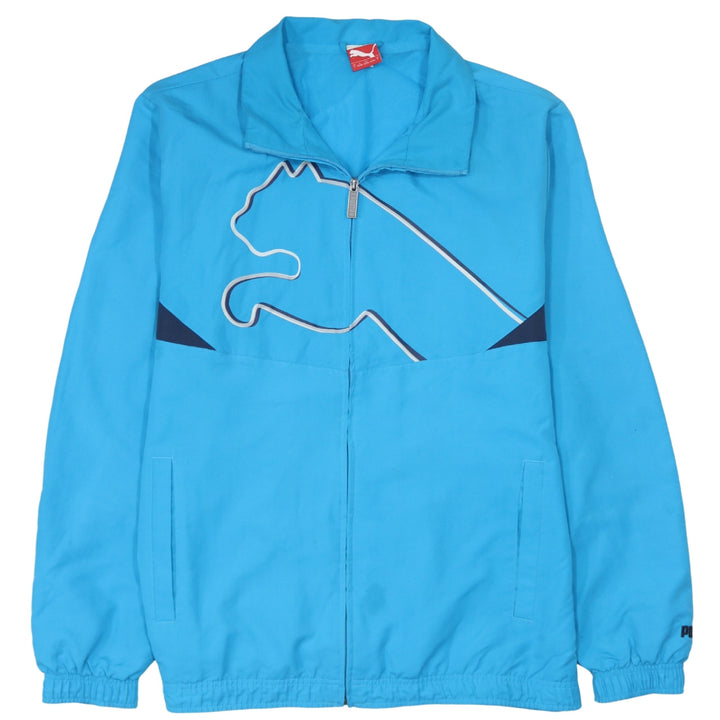Puma Turquoise Blue Windbreaker Jacket Men's Large Big Cat Logo Zip Pockets Track Top