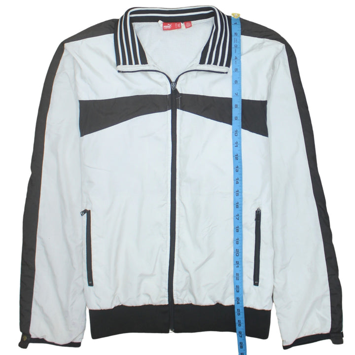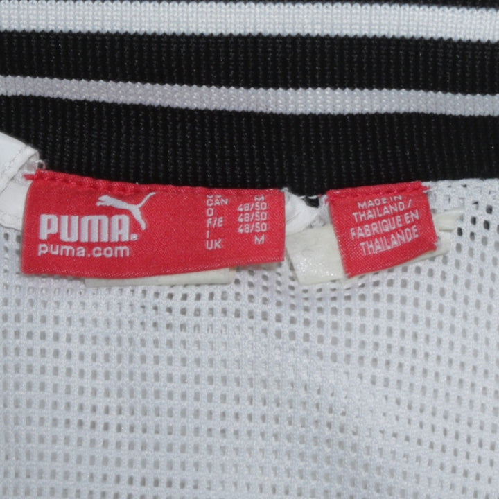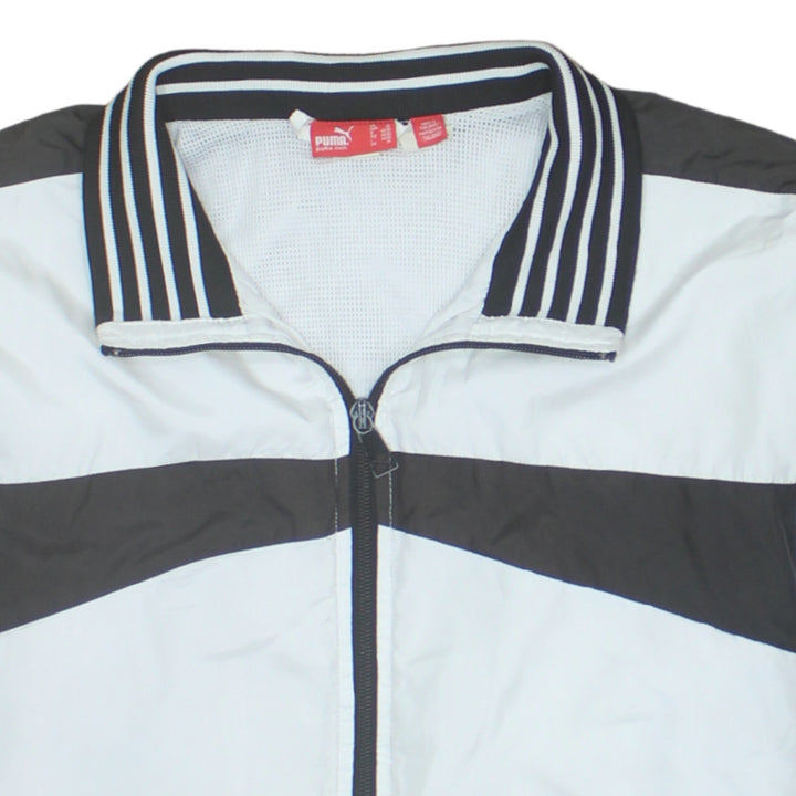 Puma White Black Windbreaker Jacket Men's Medium Zip Pockets Striped Collar Track Top