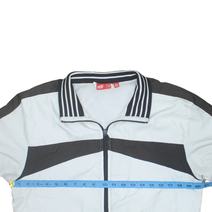 Puma, Puma jacket, Puma windbreaker, Puma track jacket, white Puma jacket, black and white jacket, men's Puma jacket, men's windbreaker, men's track top, size medium jacket, M jacket, lightweight jacket, mesh lined jacket, zip up jacket, full zip windbreaker, colour block jacket, striped collar jacket, sports jacket, training jacket, running jacket, casual outerwear, everyday jacket, athleisure jacket, street style jacket, shell jacket, polyester jacket, Puma sportswear, elasticated hem jacket, elasticated cuffs jacket, zip pockets jacket, white black windbreaker, Puma medium men, track top medium, outer layer, breathable jacket, festival jacket, gym jacket, layering piece, classic Puma, logo jacket, sporty jacket, men's outerwear, men's casual jacket, spring jacket, summer jacket, autumn jacket, lightweight top, athletic wear, Puma track top medium