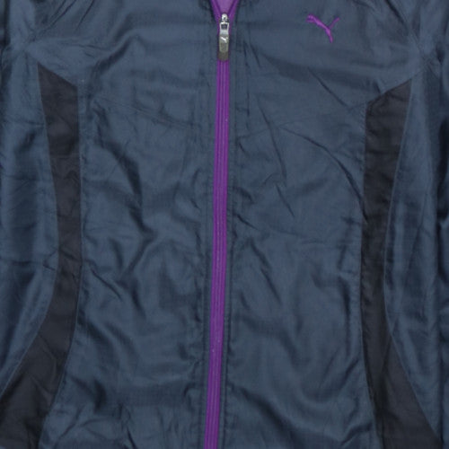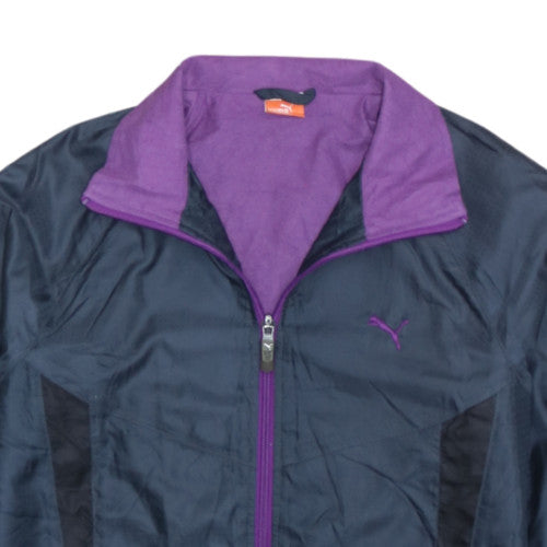 Puma Navy Purple Windbreaker Jacket Men's Small Full Zip Embroidered Logo Track Top
