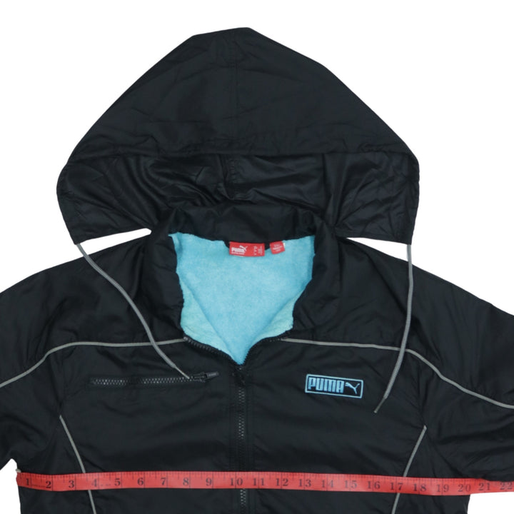 Puma 90's Vintage Black Hooded Full Zip Windbreaker Jacket Small