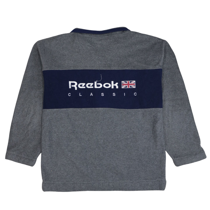 Reebok, Reebok Classic, Reebok fleece jacket, Reebok grey fleece, grey navy fleece jacket, men’s Reebok jacket, men’s grey fleece, men’s large fleece, large Reebok jacket, full zip fleece, zip front fleece, embroidered logo jacket, embroidered Reebok logo, classic sports fleece, casual fleece jacket, outdoor fleece, cosy fleece top, layering jacket, athleisure jacket, sportswear jacket, warm fleece layer, stand collar fleece, zip pockets jacket, two tone fleece, grey navy colour block, Reebok outerwear, men’s casual outerwear, fleece track top, sporty casual jacket, warm everyday jacket, loungewear fleece, gym cover up, walking jacket, hiking fleece, 90s style Reebok, retro Reebok classic, soft polyester fleece, wool blend fleece, relaxed fit jacket, oversized fit fleece, street casual jacket, vintage Reebok fleece, union jack logo jacket, classic logo fleece, men’s full zip top, comfortable fleece top, versatile casual layer, second hand Reebok, pre-owned Reebok jacket