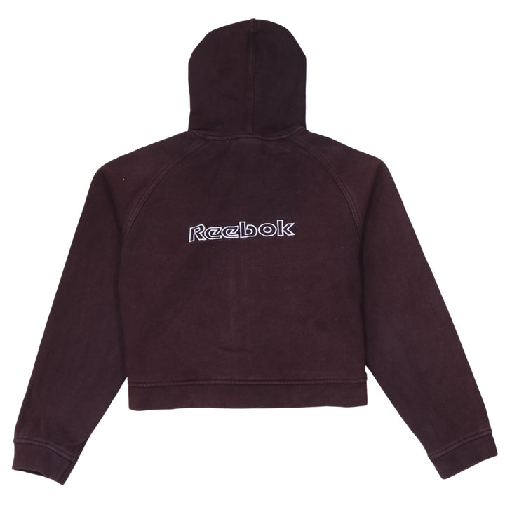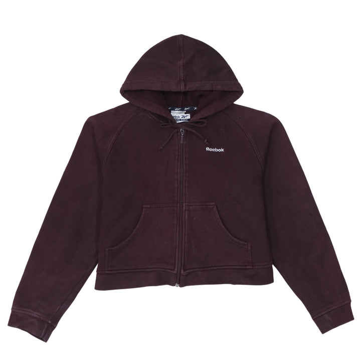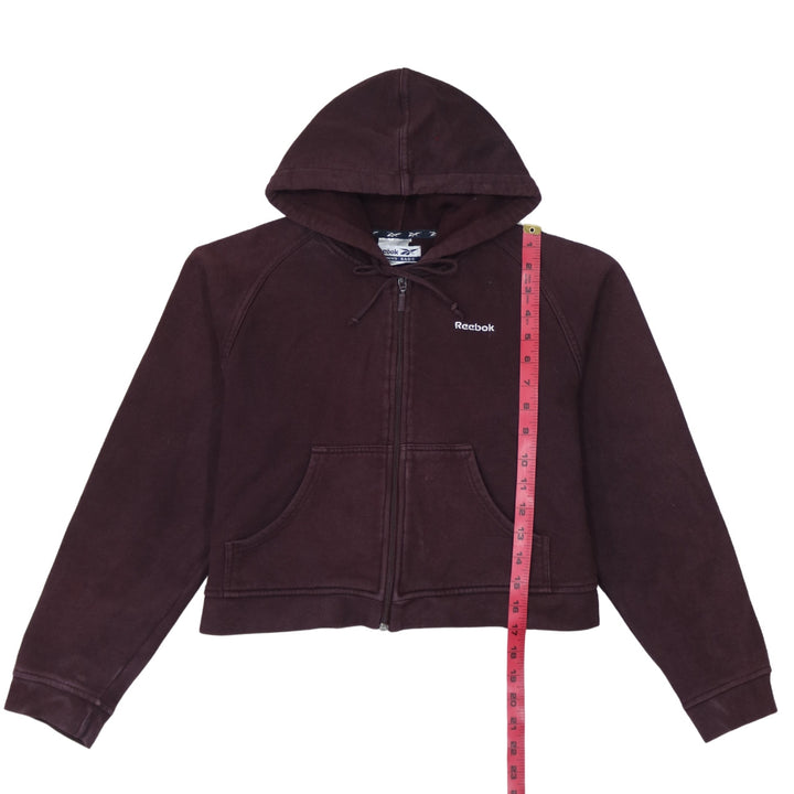 Reebok Burgundy Red Hoodie Women’s Large Embroidered Logo Full Zip Cropped Sweatshirt