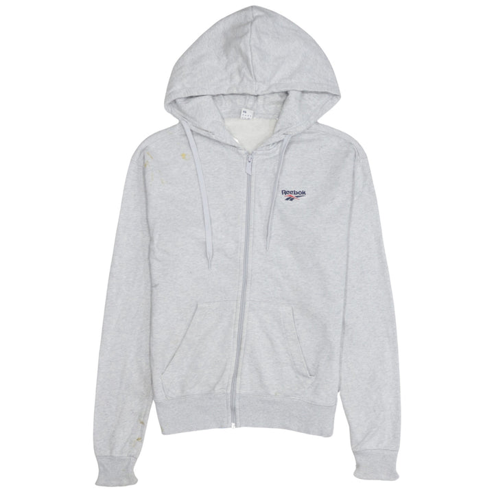 Reebok Light Grey Full Zip Hoodie Men's XSmall Embroidered Chest Logo Split Pockets Sweatshirt