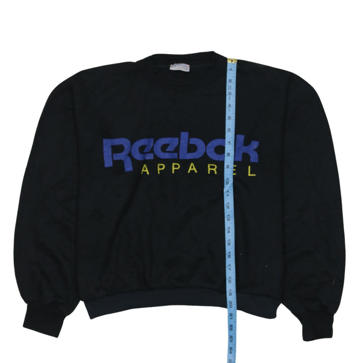 Reebok, Reebok sweatshirt, Reebok jumper, Reebok crewneck, black Reebok sweatshirt, black crewneck, men’s Reebok, men’s sweatshirt, men’s black jumper, medium sweatshirt, M sweatshirt, embroidered logo, embroidered Reebok logo, logo sweatshirt, spell out logo, Reebok apparel, casual pullover, fleece sweatshirt, cosy jumper, ribbed cuffs, ribbed hem, ribbed neckline, long sleeve top, athletic wear, sportswear, casual wear, loungewear, street style, everyday basic, classic sweatshirt, black fleece top, unisex style, oversized fit, relaxed fit, 90s style Reebok, graphic logo, bold logo, minimalist back, wardrobe staple, layering piece, winter sweatshirt, autumn jumper, comfy sweater, crew neck top, vintage Reebok sweatshirt