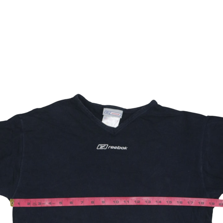 Reebok Black T Shirt Men’s Medium Embroidered Chest Logo V Neck Casual Tee Top
