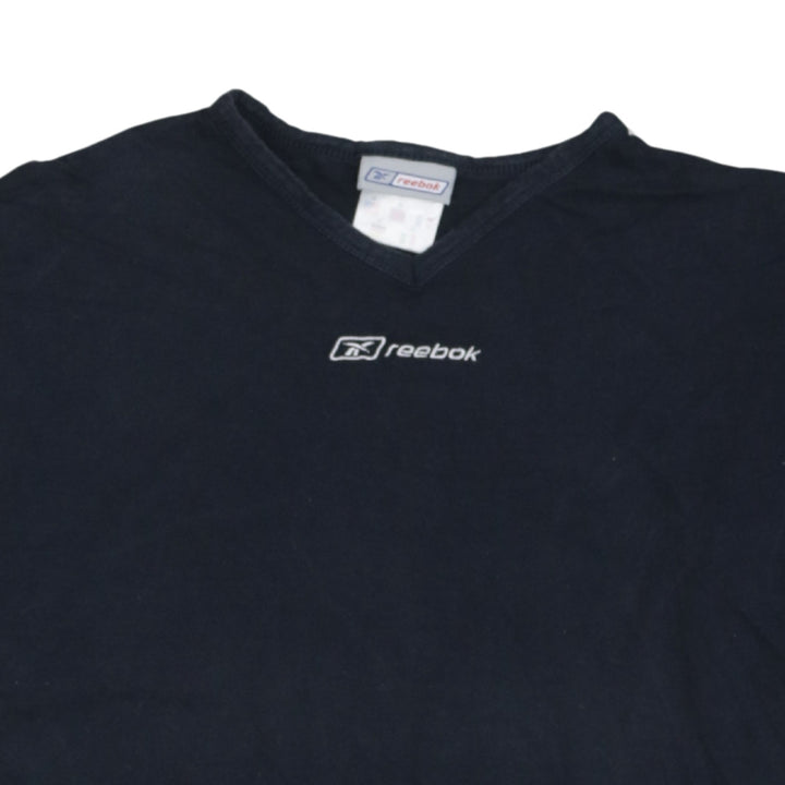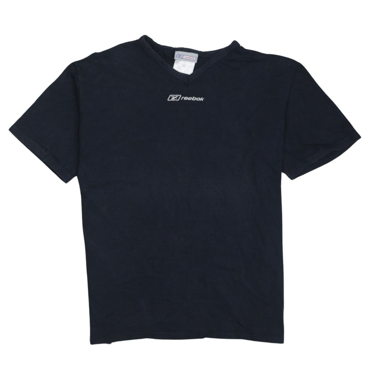 Classic Reebok black tee with an embroidered chest logo and easy V neck line. A versatile casual top that pairs effortlessly with jeans, joggers or shorts. Comfortable relaxed fit and soft handle make it a go-to piece for everyday wear, layering under jackets, or gym and leisure outfits.