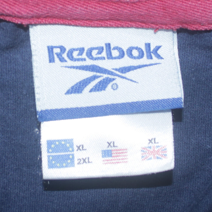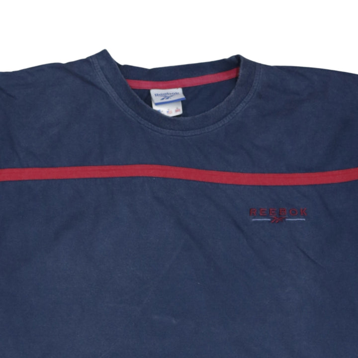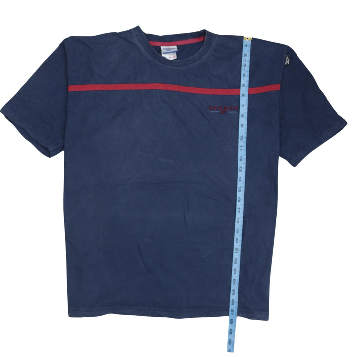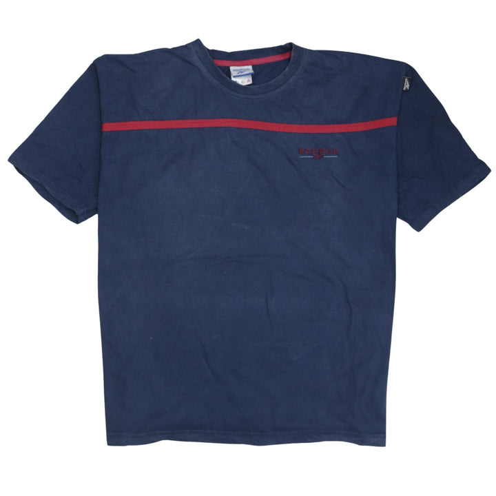 Reebok Navy Blue T Shirt Men's XLarge Embroidered Chest Logo Red Stripe Casual Top
