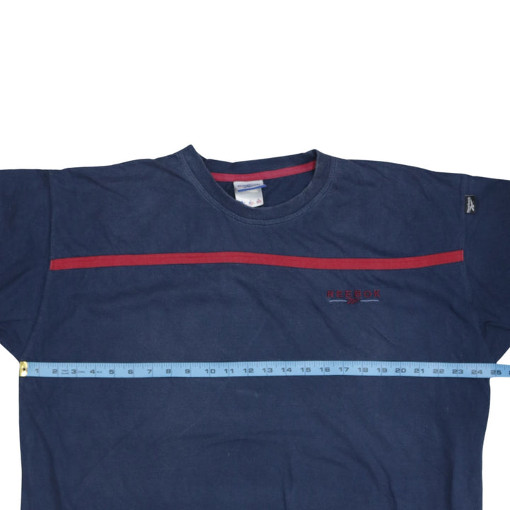 Reebok, Reebok T shirt, Reebok tee, Reebok top, navy Reebok, navy blue T shirt, navy cotton tee, men's Reebok T shirt, mens navy T shirt, XLarge Reebok, XL Reebok tee, embroidered logo T shirt, chest logo tee, red stripe T shirt, contrast stripe top, casual cotton T shirt, short sleeve T shirt, crew neck tee, classic logo tee, sportswear T shirt, athletic casual top, everyday basic tee, relaxed fit T shirt, oversized fit tee, 25 inch pit to pit, 27 inch length, 10 inch sleeve, 100% cotton top, branded T shirt, logo T shirt, vintage Reebok tee, navy blue casual wear, men's casual top, gym T shirt, loungewear tee, street casual tee, classic sports brand, navy red T shirt, soft cotton jersey, wardrobe staple, easy wear T shirt, summer T shirt, layering tee, single colour T shirt, minimal design tee, mens fashion top, sports casual T shirt, logo tab sleeve, crewneck casual top