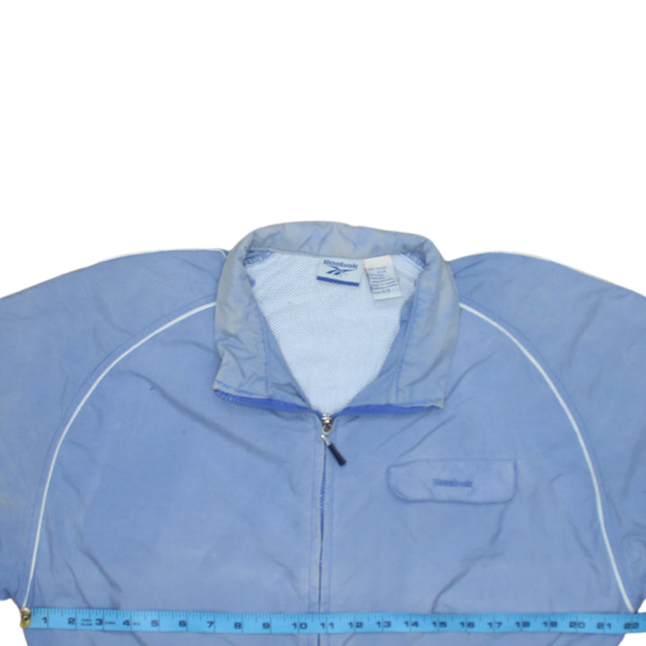 Condition: Pre-owned with noticeable colour fading and general wear – please check all photos. Still a great lightweight Reebok piece with plenty of life left, ideal for layering over tees and sweats for everyday wear, training, or festivals. Classic light blue colour and relaxed fit make it an easy wardrobe staple.