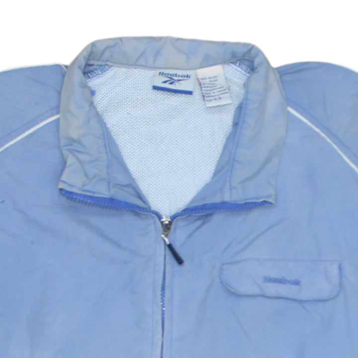 Reebok, Reebok jacket, Reebok windbreaker, Reebok track jacket, light blue jacket, blue windbreaker, men’s Reebok, men’s small jacket, small windbreaker, nylon jacket, mesh lined jacket, full zip jacket, zip up jacket, drawstring waist jacket, embroidered Reebok logo, logo windbreaker, casual outerwear, sportswear jacket, training jacket, athletic jacket, lightweight coat, shell jacket, spring jacket, festival jacket, street jacket, everyday jacket, long sleeve jacket, stand collar jacket, elastic cuff jacket, pocket jacket, flap pocket jacket, 90s style Reebok, classic Reebok, reebok spellout, men’s outerwear, casual sports jacket, track top, running jacket, walking jacket, gym cover up, layering piece, blue reebok coat, relaxed fit jacket, vintage Reebok windbreaker, colour fading jacket, pre owned Reebok, second hand Reebok, nylon windbreaker, mesh lining, light shell jacket