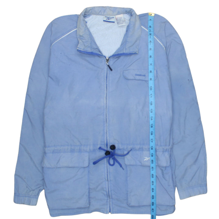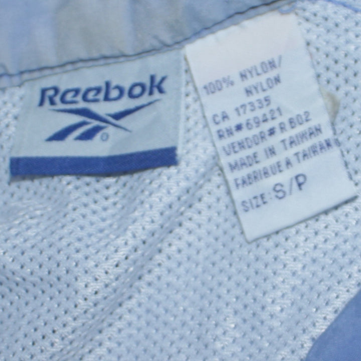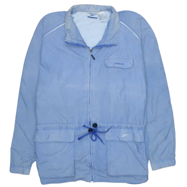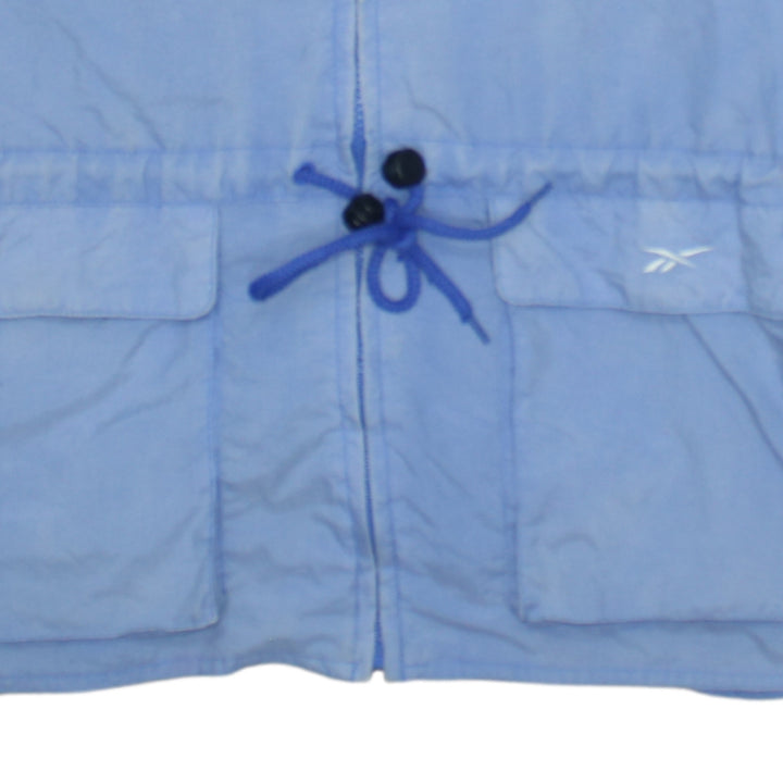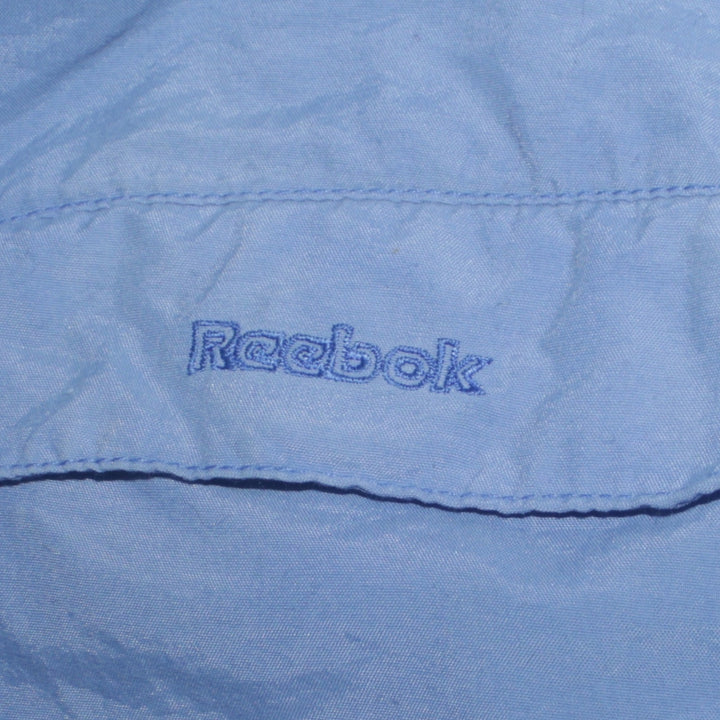 Key Features: Light blue shell, full zip front, front flap pockets, embroidered Reebok logo, drawstring waist