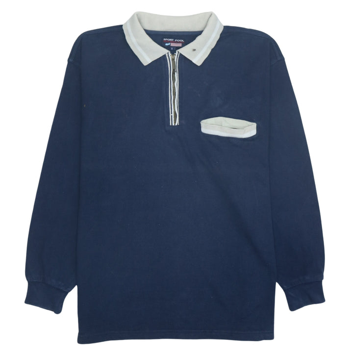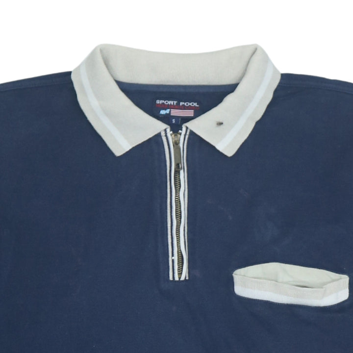 Sport Pool Navy Blue Long Sleeve Polo Men’s Small Zip Neck Contrast Collar Top
