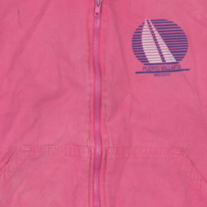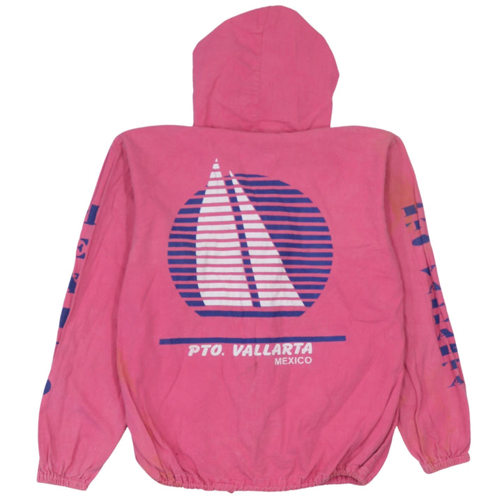 Retro hoodie, Retro pink hoodie, bright pink hoodie, men’s medium hoodie, men’s M hoodie, sailing print hoodie, sailing graphic jacket, Pto Vallarta Mexico hoodie, coastal hoodie, holiday hoodie, lightweight hoodie, zip hoodie, full zip hoodie, casual zip jacket, graphic windbreaker, pink windbreaker, elastic hem hoodie, elastic cuff hoodie, drawstring hood top, men’s casual outerwear, everyday hoodie, beach hoodie, festival hoodie, faded pink hoodie, worn in hoodie, vintage style hoodie, 90s hoodie style, polyester wool blend hoodie, graphic back print jacket, printed sleeve hoodie, relaxed fit hoodie, oversized fit hoodie, chest 21.5 inch, length 22.5 inch, sleeve 19.5 inch, men’s casual layer, sailing boat graphic top, Mexican souvenir hoodie, bold colour hoodie, statement hoodie, pink graphic jacket, men’s pink outerwear, unisex fit hoodie, casual street hoodie, throw on layer, second hand hoodie, pre-owned hoodie
