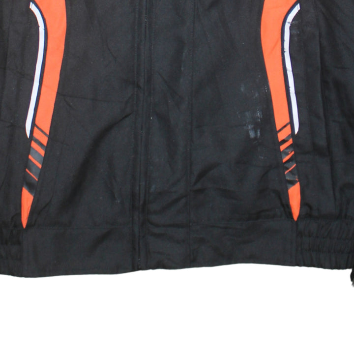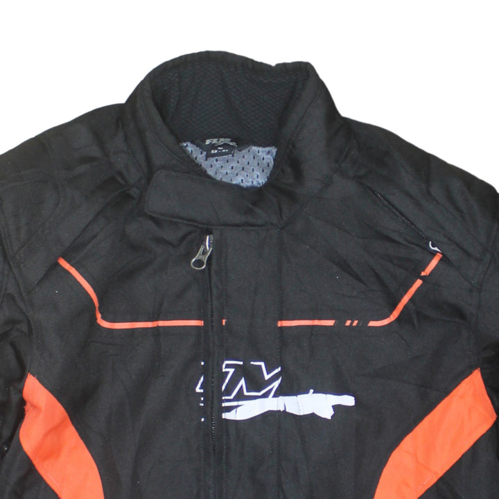 FLM Black Orange Jacket Men's Small Reflective Logo Zip Pockets Motorcycle Windbreaker