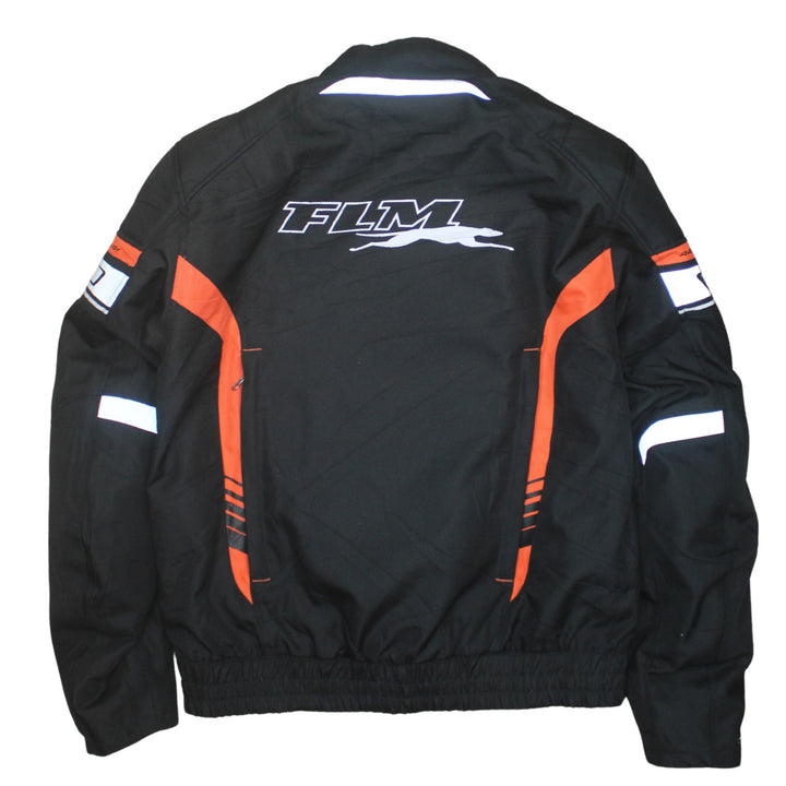 This FLM motorcycle-style jacket delivers a bold black and orange look with practical details for everyday riding or casual wear. The reflective branding and contrast panels stand out, while the mesh lining helps keep it comfortable and breathable. Great layered over a hoodie or tee, it is a solid choice if you want a functional outer layer with a strong motorsport aesthetic.
