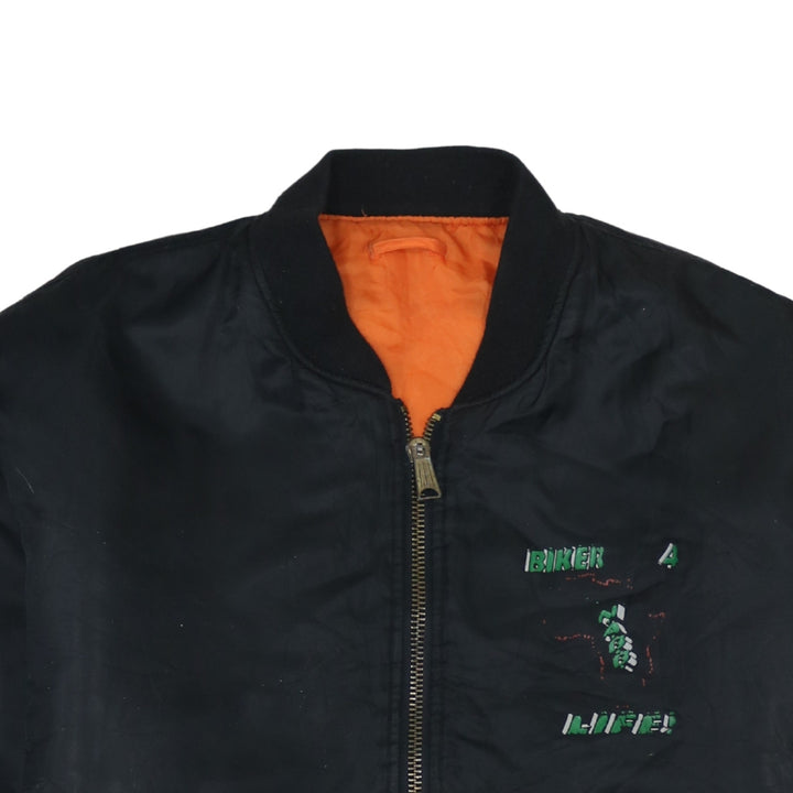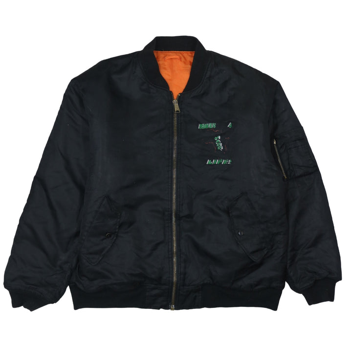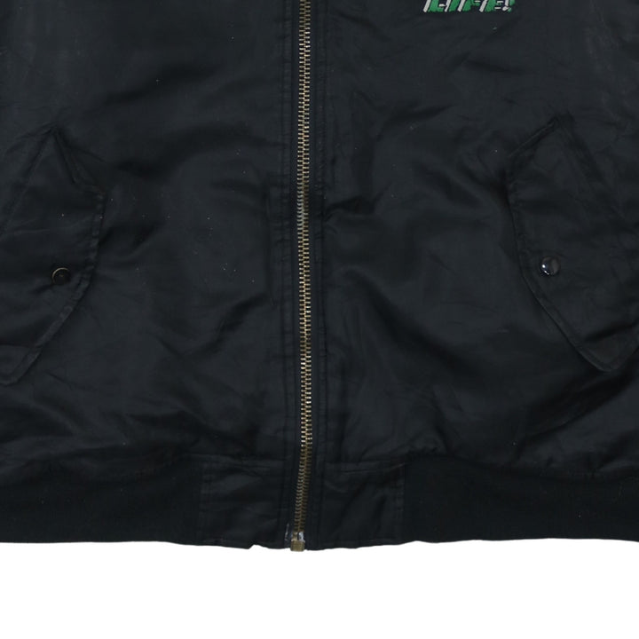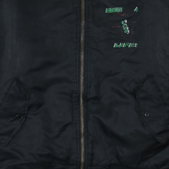 Retro Black Bomber Jacket Men's XXLarge Biker 4 Life Printed Back Graphic Windbreaker