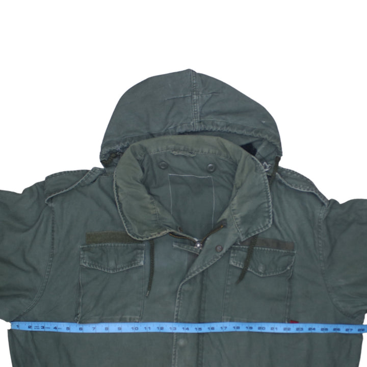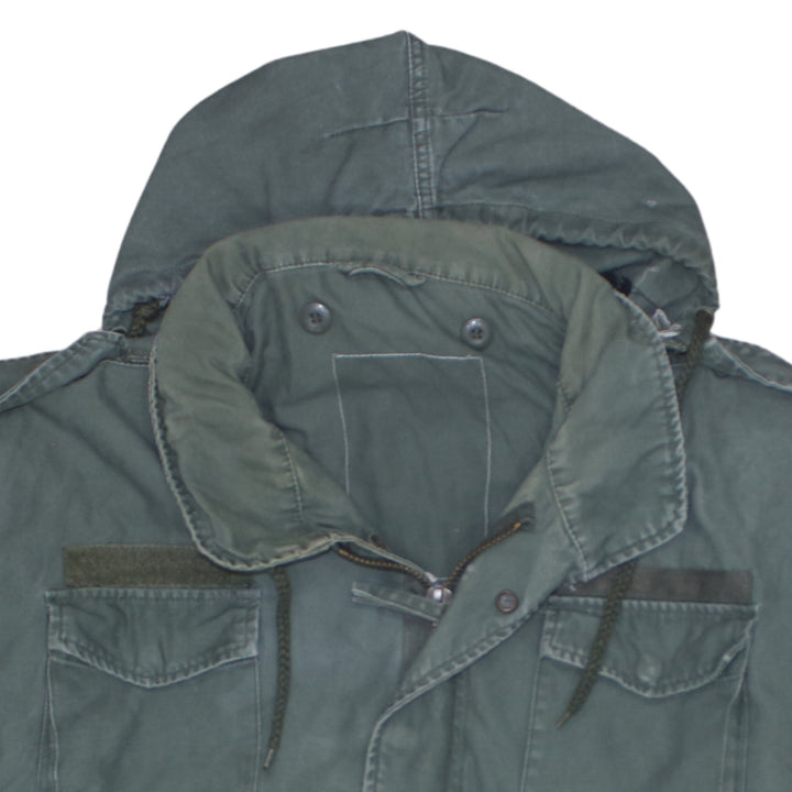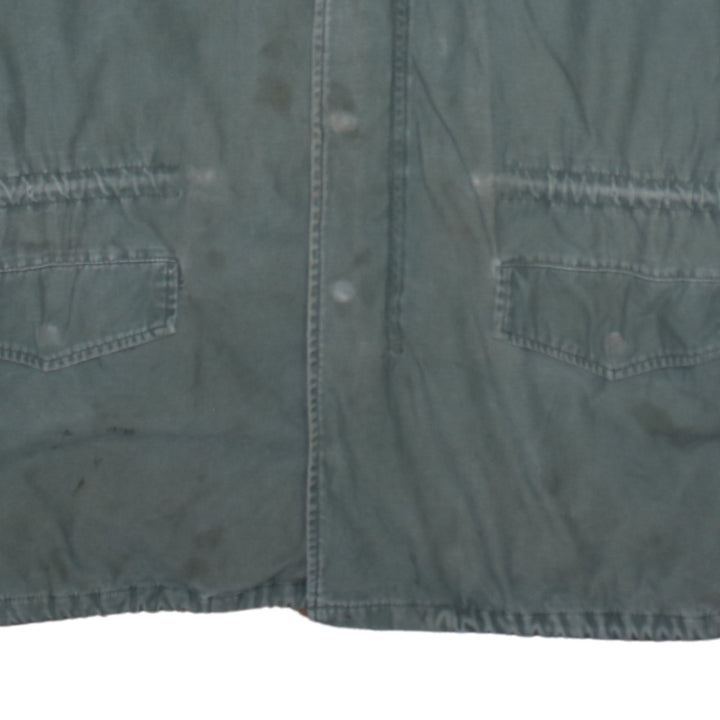 Retro Faded Green Hooded Jacket Men’s XXLarge Utility Pockets Drawstring Waist Parka Coat