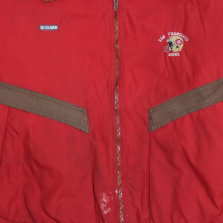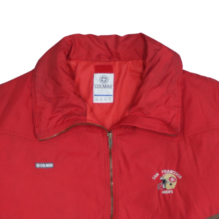Colmar jacket, Colmar windbreaker, Colmar sportswear, Colmar red jacket, red windbreaker, red track jacket, men’s Colmar jacket, men’s red jacket, men’s XXLarge jacket, XXL windbreaker, San Francisco 49ers jacket, 49ers embroidery, NFL style jacket, embroidered logo jacket, full zip jacket, zip up jacket, casual outerwear, lightweight jacket, polyester jacket, wool blend jacket, ribbed hem jacket, ribbed cuff jacket, collared jacket, brown panel jacket, colour block jacket, sports jacket, casual sportswear, everyday jacket, autumn jacket, spring jacket, layering piece, oversized fit jacket, relaxed fit jacket, mens outerwear, mens sports jacket, mens track top, mens windbreaker coat, vintage Colmar, classic Colmar style, red mens outerwear, statement jacket, collectible sports jacket, thrift jacket, pre owned Colmar, second hand jacket, fashion jacket, street style jacket, mens casual coat, retro style jacket, san francisco 49ers fan jacket, nfl inspired outerwear