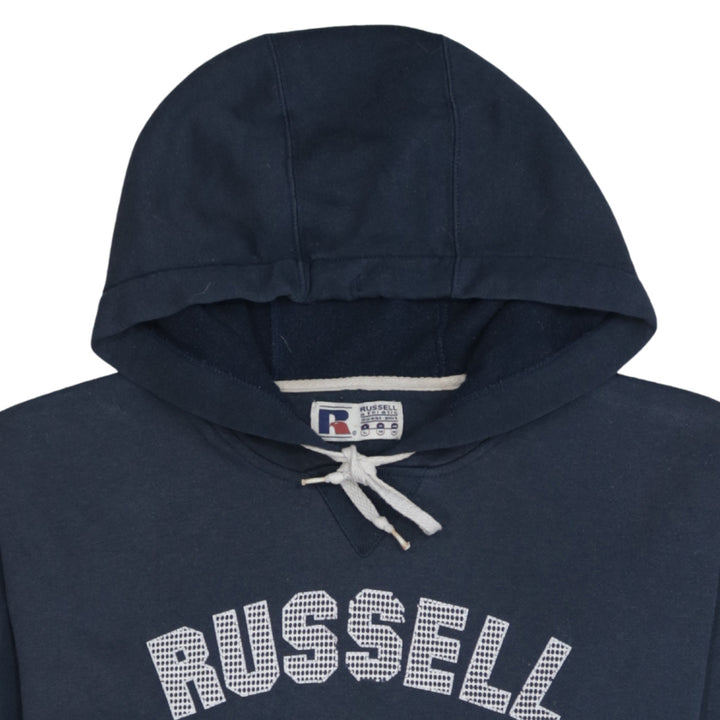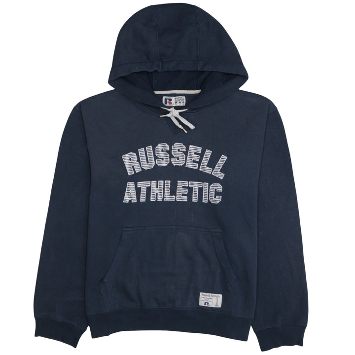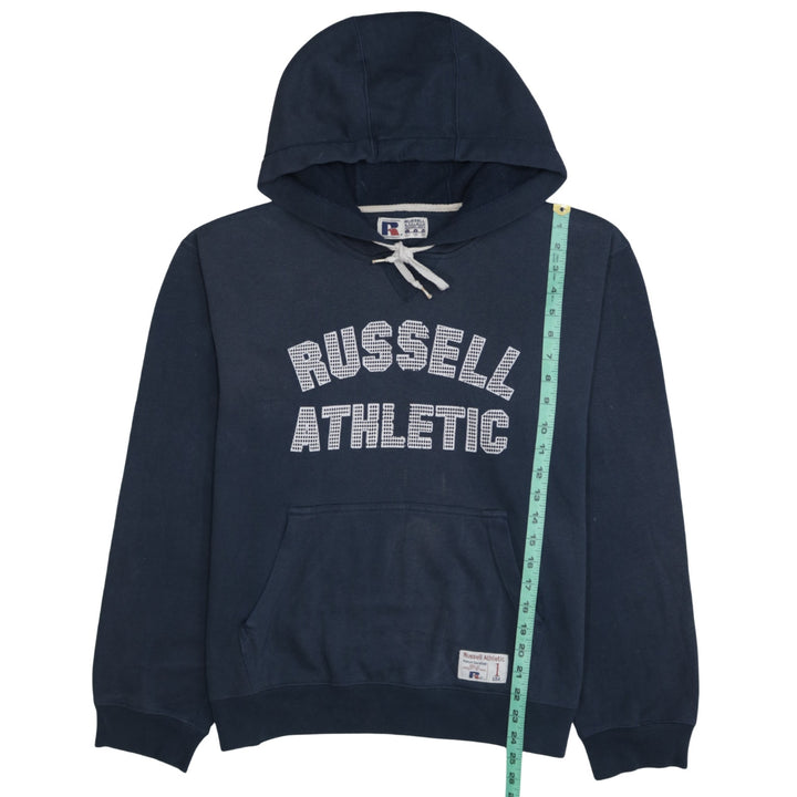 Russell Athletic Navy Blue Hoodie Men's Medium Printed Logo Front Pocket Pullover Sweatshirt