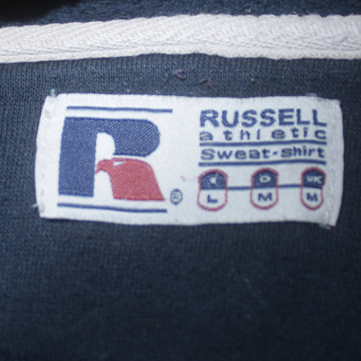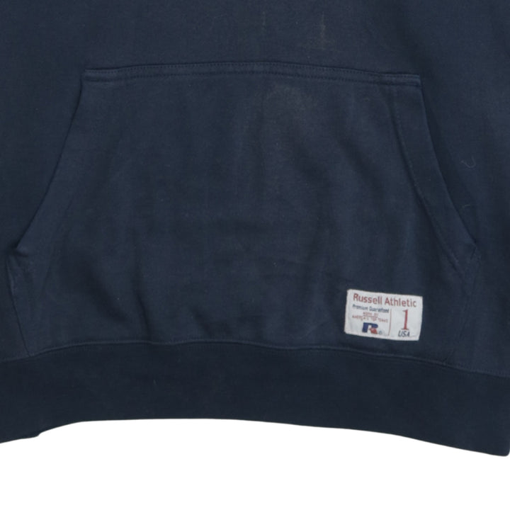 Russell Athletic hoodie, Russell Athletic navy hoodie, Russell Athletic sweatshirt, navy blue hoodie, navy hooded sweatshirt, men's Russell Athletic, men's navy hoodie, men's medium hoodie, medium pullover hoodie, printed logo hoodie, chest logo hoodie, collegiate logo hoodie, casual hoodie, fleece hoodie, cotton blend hoodie, classic sportswear hoodie, loungewear hoodie, gym hoodie, everyday hoodie, Russell Athletic pullover, Russell Athletic fleece top, men's casual top, men's loungewear top, long sleeve hoodie, drawstring hood hoodie, front pocket hoodie, ribbed hem hoodie, ribbed cuff hoodie, 90s style sports hoodie, navy blue fleece top, athletic wear hoodie, sports casual hoodie, branded hoodie, logo print sweatshirt, relaxed fit hoodie, oversized fit hoodie, unisex style hoodie, street casual hoodie, warm winter hoodie, layering piece, wardrobe staple, second hand hoodie, pre-owned Russell Athletic, graphic logo hoodie, soft fleece jumper, men's sportswear, classic navy hoodie, pullover sweatshirt, casual jumper, athletic brand hoodie, comfortable everyday wear