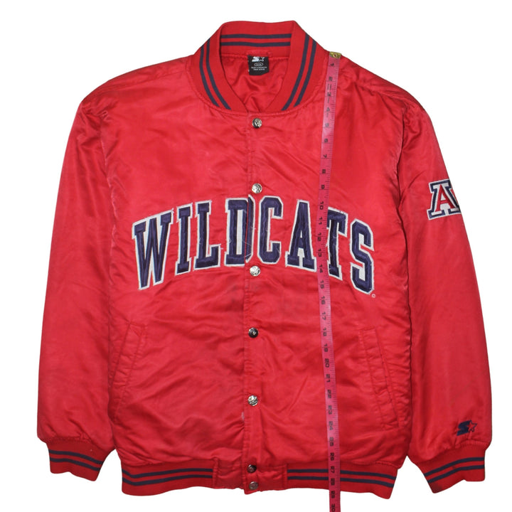 Starter jacket, Starter windbreaker, Starter Wildcats jacket, red Starter jacket, red nylon jacket, men's Starter jacket, men's red jacket, men's large jacket, L size jacket, Wildcats embroidered jacket, collegiate jacket, varsity style jacket, snap button jacket, nylon windbreaker, padded nylon jacket, striped rib hem jacket, ribbed cuffs jacket, Arizona Wildcats coat, sports fan jacket, casual outerwear, everyday jacket, lightweight padded jacket, embroidered logo jacket, sleeve logo jacket, baseball style jacket, bomber style jacket, red sports jacket, US college jacket, men's outerwear, relaxed fit jacket, oversized fit jacket, nylon polyester jacket, vintage Starter coat, collectible Starter piece, athleisure jacket, layering jacket, autumn jacket, spring jacket, street casual jacket, classic logo jacket, bold logo jacket, red varsity coat, throwback sports jacket, men's casual coat, festival jacket, game day jacket, snap fastening coat, Starter branded outerwear, retro sports fanwear, bold red nylon windbreaker, university team jacket