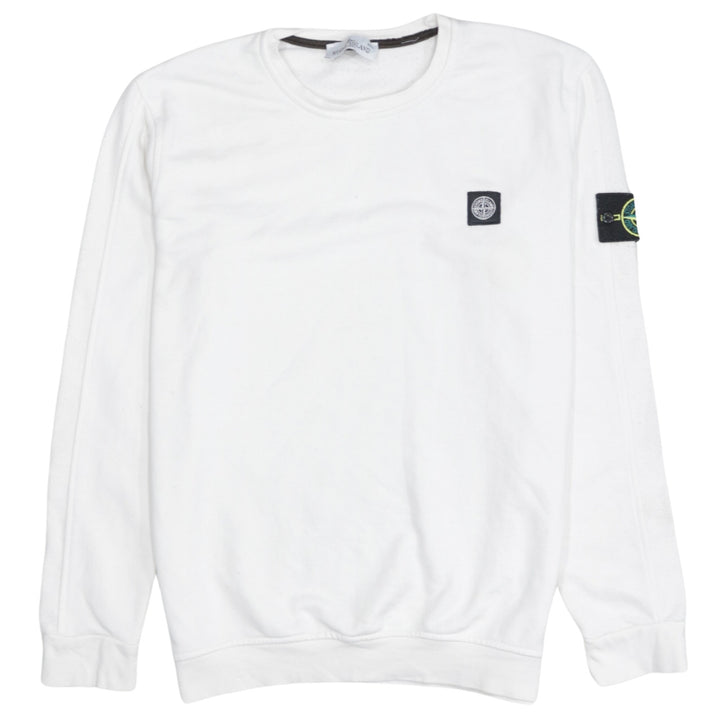 Stone Island White Sweatshirt Women's XXL Embroidered Badge Logo Crewneck Pullover Top