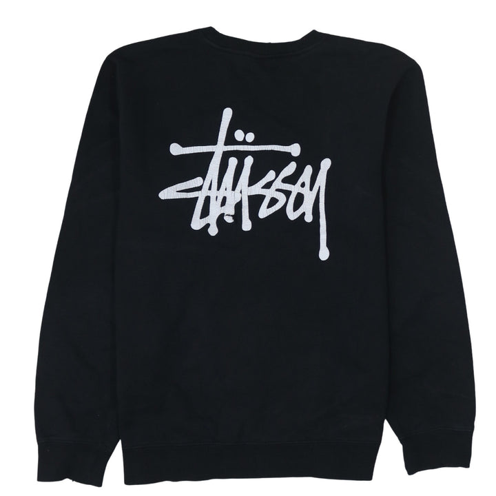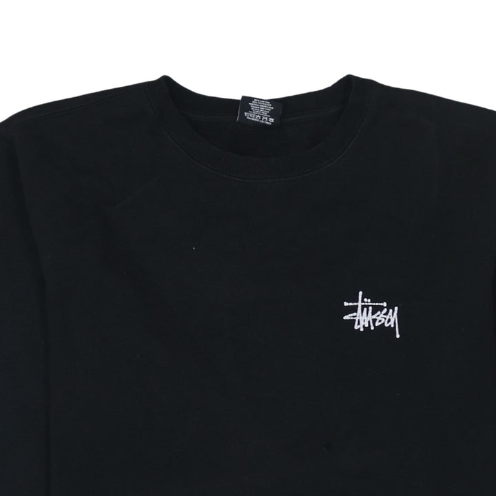 Stussy Black Sweatshirt Men's Medium Printed Back Logo Crewneck Pullover Fleece Top