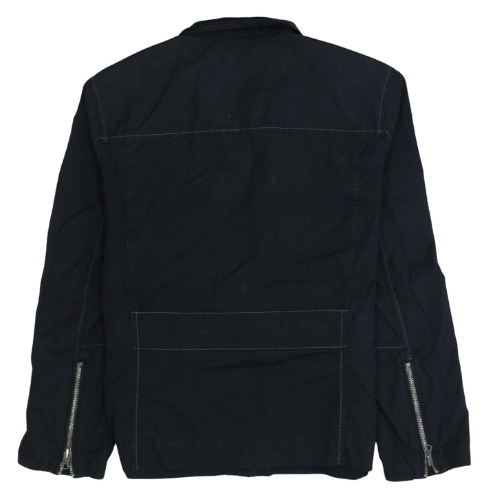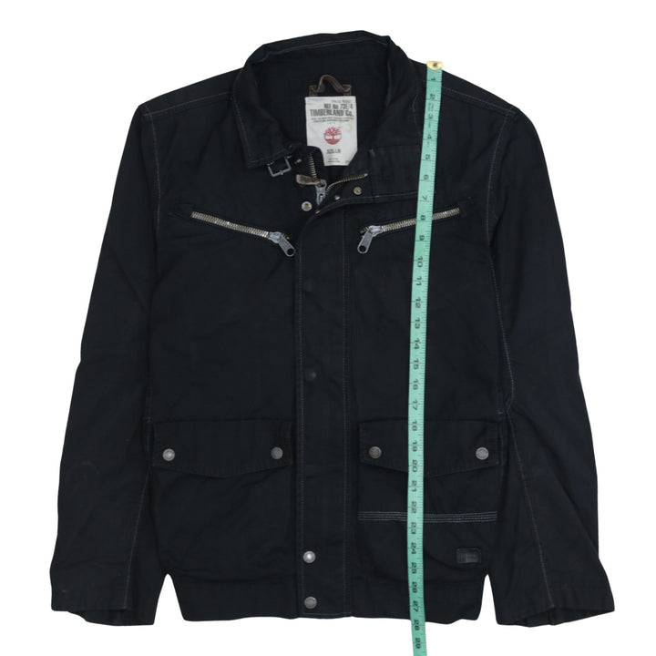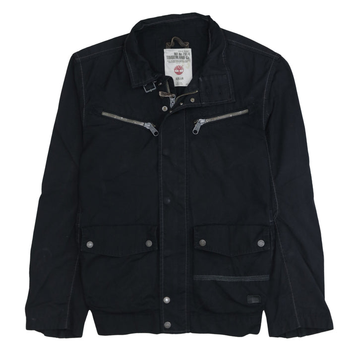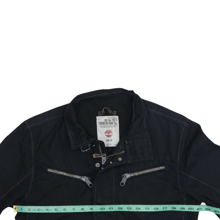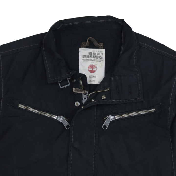 Timberland Black Jacket Men's Large Zip Pockets Stand Collar Contrast Stitching Outerwear