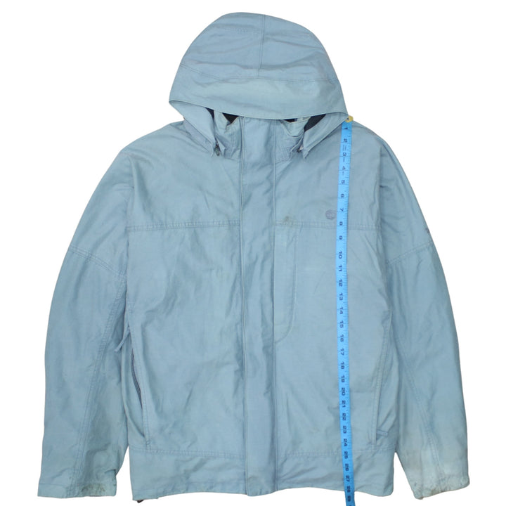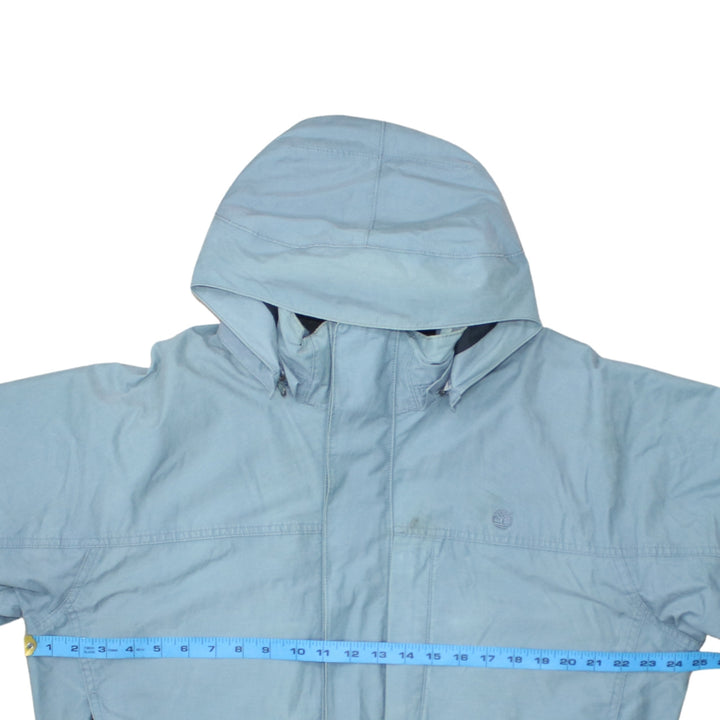 Timberland Light Blue Hooded Jacket Men's Large Zip Pockets Subtle Logo Windbreaker