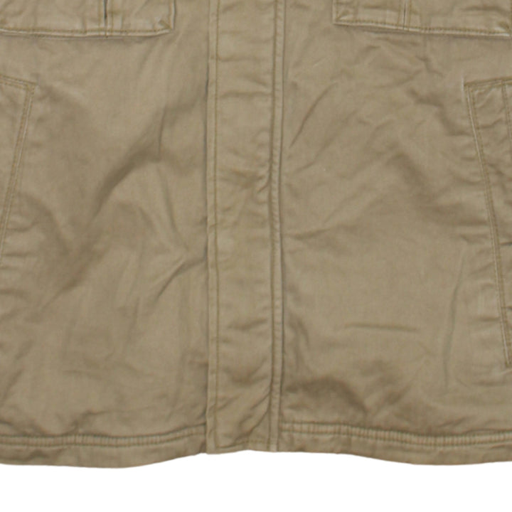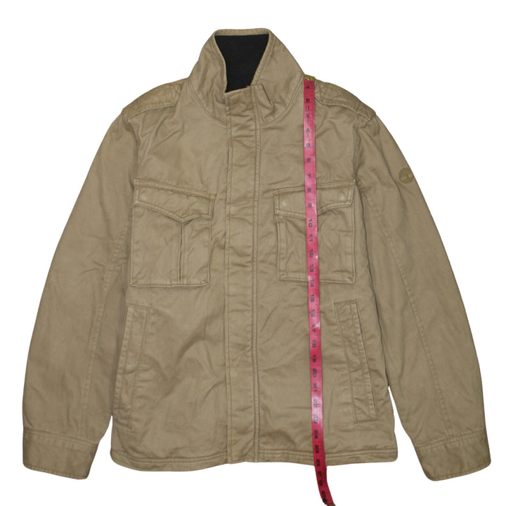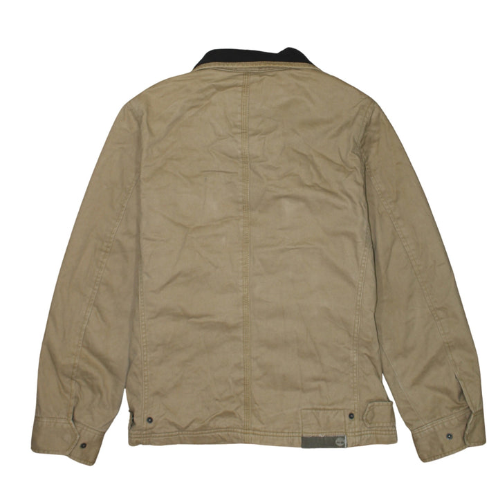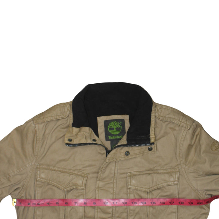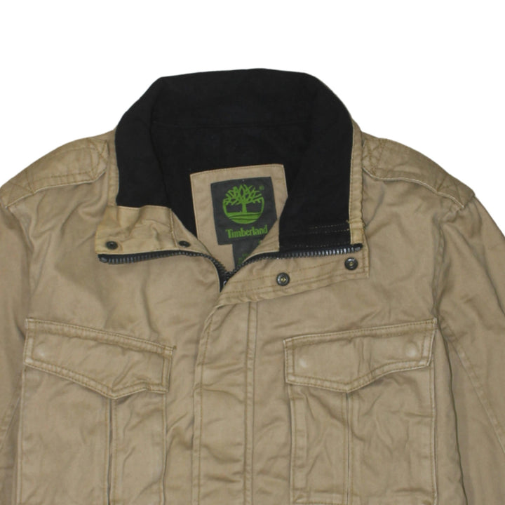 Timberland Beige Jacket Men's Small Zip Front Multi Pocket Embroidered Logo Outerwear