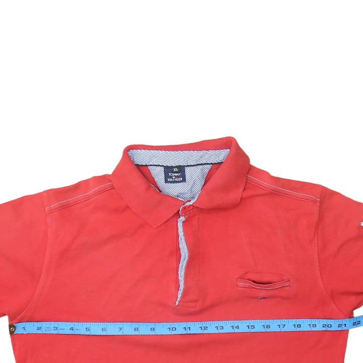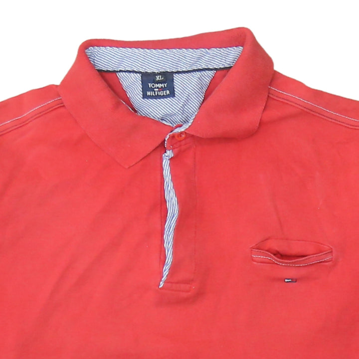 Tommy Hilfiger Red Polo Shirt Women’s XLarge Pocket Detail Contrast Placket Embroidered Logo