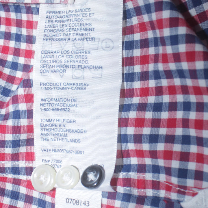 Tommy Hilfiger Red Blue Check Shirt Men’s Large Embroidered Chest Logo Long Sleeve Button Up Casual Top