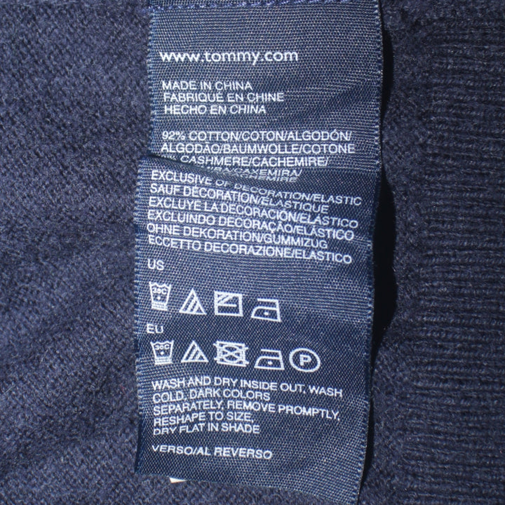 Tommy Hilfiger Navy Blue Jumper Women’s Medium V Neck Small Flag Logo Knit Sweater