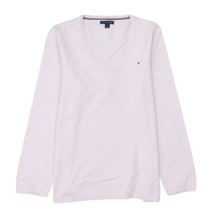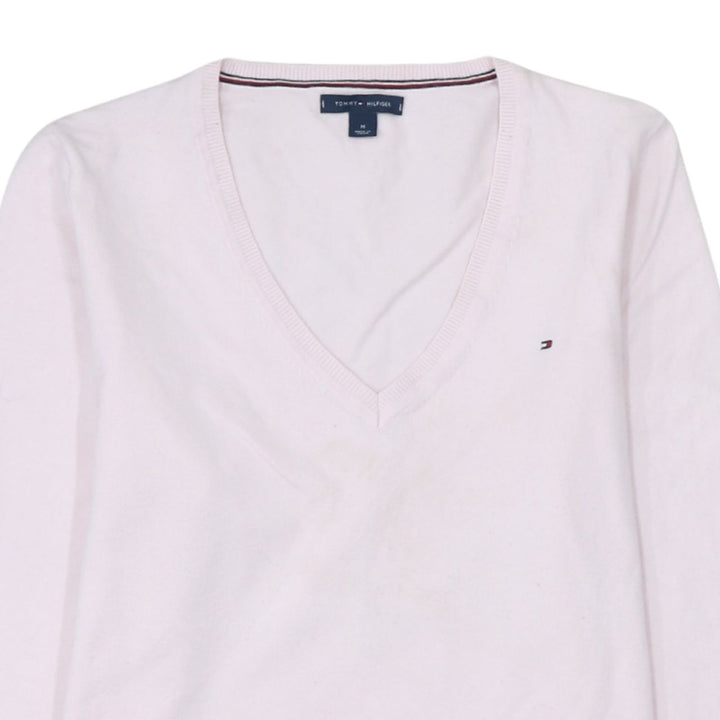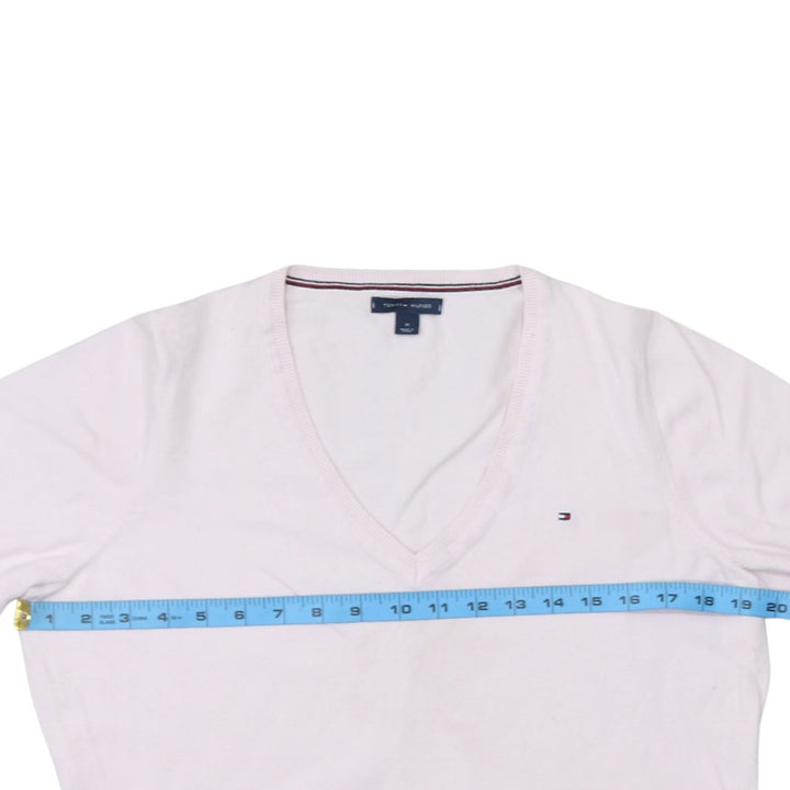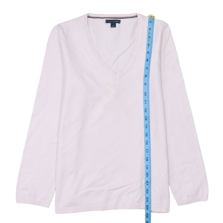 Tommy Hilfiger Light Pink Jumper Women’s Medium V Neck Small Flag Logo Knit Sweater