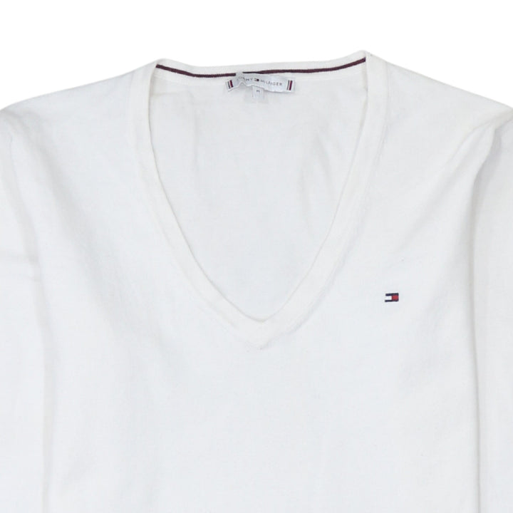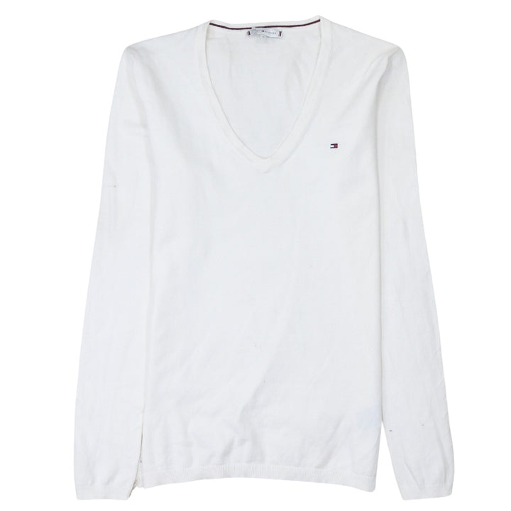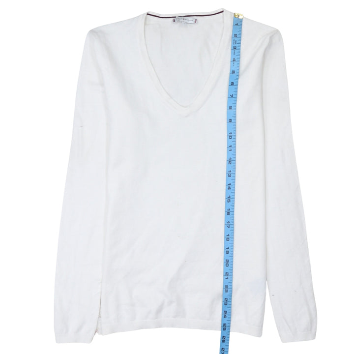 Tommy Hilfiger, Tommy jumper, Tommy sweater, white jumper, white knit, women’s jumper, women’s sweater, women’s knitwear, V neck jumper, V neck sweater, cotton blend jumper, cotton knit, long sleeve jumper, classic knit, minimalist jumper, embroidered logo jumper, flag logo, designer knitwear, pre-owned Tommy Hilfiger, casual knit, smart casual jumper, office wear jumper, layering piece, white V neck, medium jumper, M size jumper, women’s medium sweater, pullover knit, everyday knitwear, capsule wardrobe knit, neutral colour jumper, soft cotton sweater, breathable knit, ribbed hem, ribbed cuffs, simple white jumper, eBay knitwear, Depop knit, Vinted jumper, timeless style, classic women’s jumper, Tommy Hilfiger women’s knit, logo sweater, lightweight jumper, crew wardrobe essential, clean white knit, casual top, long sleeve top, knit pullover, fashion jumper