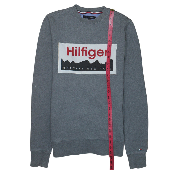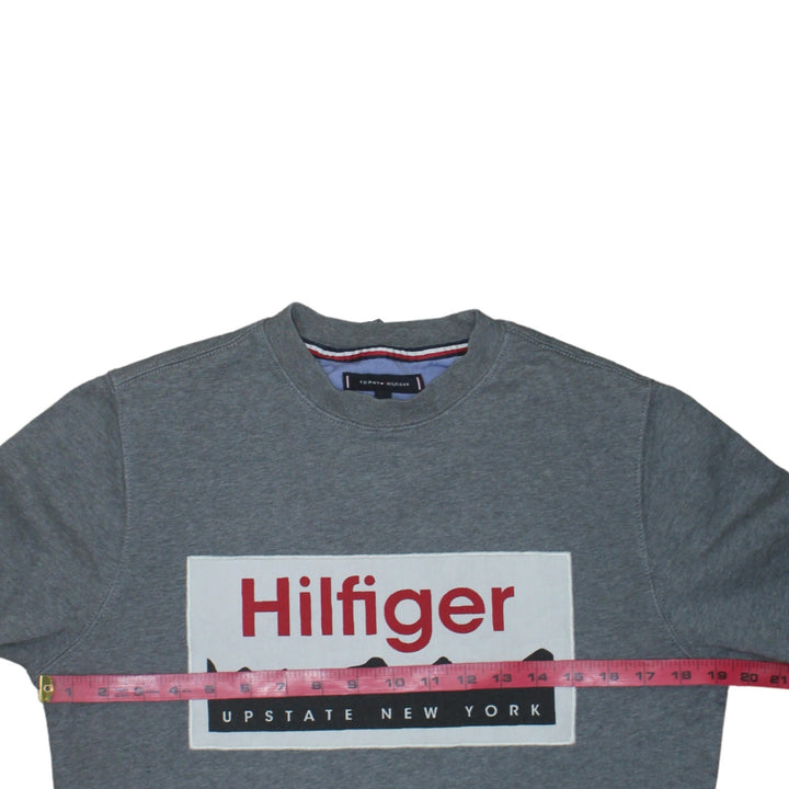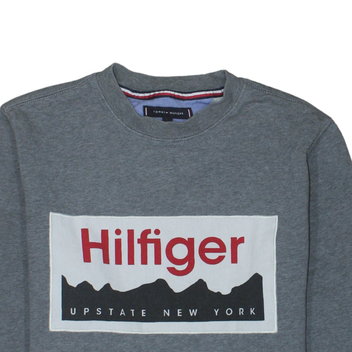 Tommy Hilfiger Grey Sweatshirt Men's Small Printed Hilfiger Upstate New York Logo Pullover