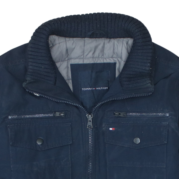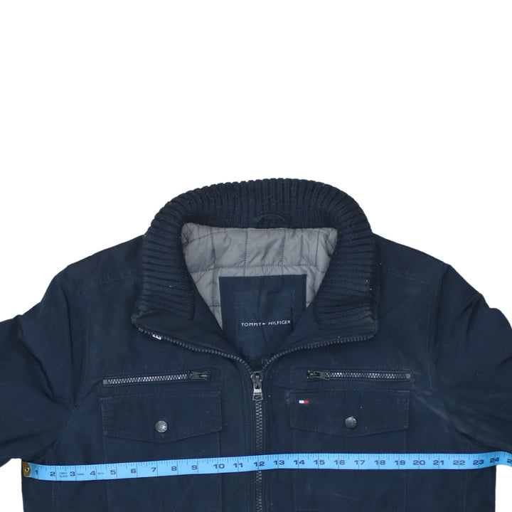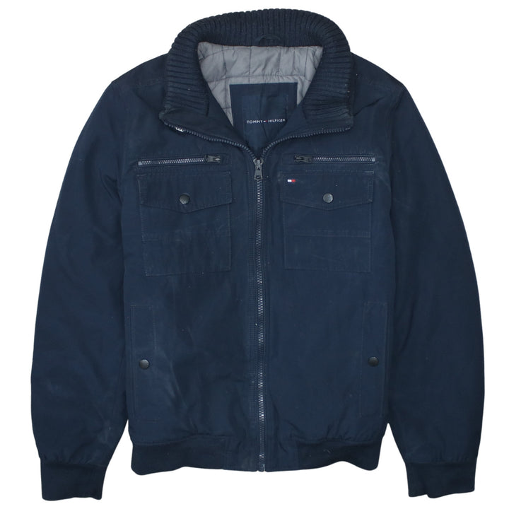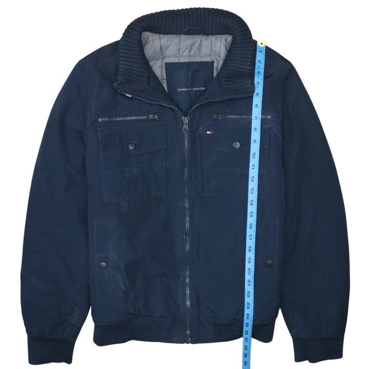 Tommy Hilfiger Navy Blue Jacket Men's Large Zip Pockets Ribbed Collar Bomber Outerwear