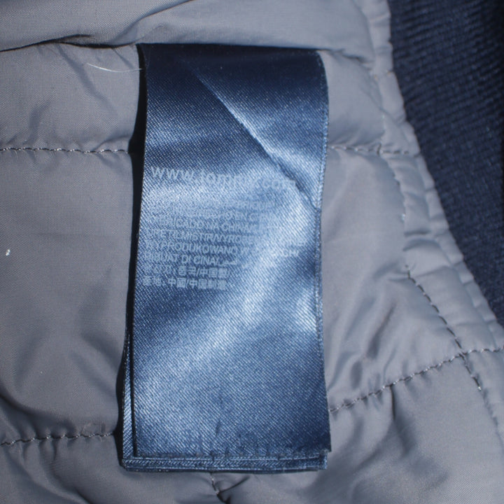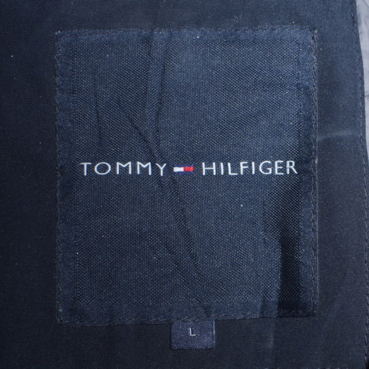 Tommy Hilfiger, Tommy Hilfiger jacket, Tommy Hilfiger bomber, navy jacket, navy blue jacket, men's jacket, mens outerwear, men's large jacket, large size jacket, L size jacket, full zip jacket, zip up jacket, bomber style jacket, casual jacket, polyester jacket, wool blend jacket, padded jacket, quilted lining jacket, ribbed collar jacket, ribbed hem jacket, ribbed cuffs jacket, chest pockets jacket, zip pockets jacket, flap pockets jacket, navy bomber coat, Hilfiger flag logo, embroidered logo jacket, classic menswear, casual outerwear, everyday jacket, men's fashion, layering piece, autumn jacket, winter jacket, spring jacket, navy blue bomber, vintage Tommy Hilfiger, pre-owned Tommy Hilfiger, branded jacket, designer jacket, mens casual coat, windbreaker jacket, street casual jacket, navy outer layer, timeless jacket style, wardrobe staple, 13197-04