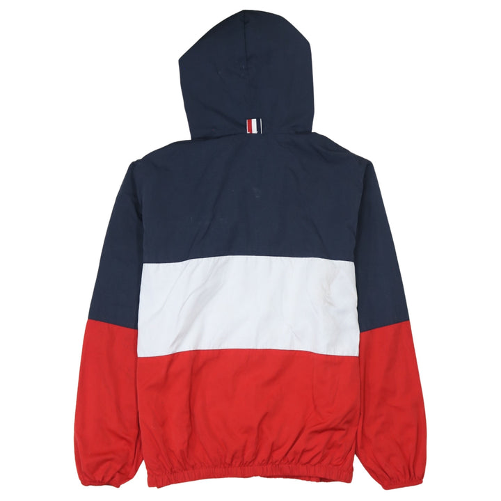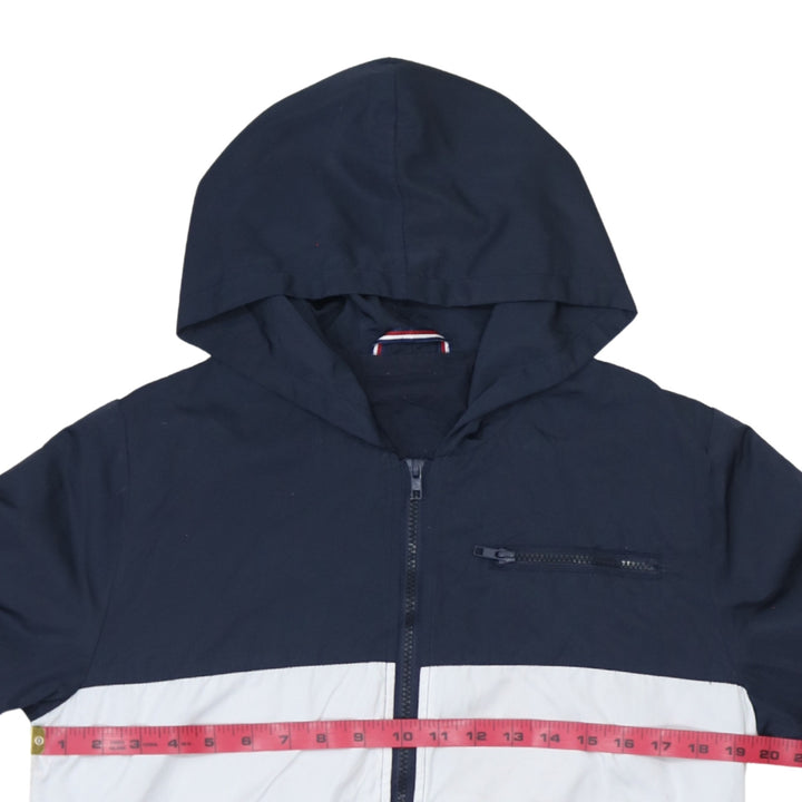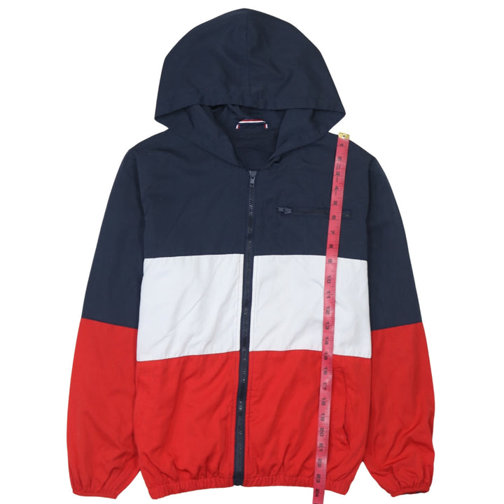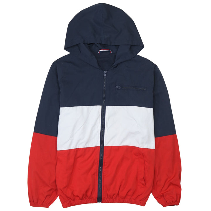 Tommy Hilfiger Navy White Red Hooded Jacket Men's Small Zip Pockets Colour Block Windbreaker