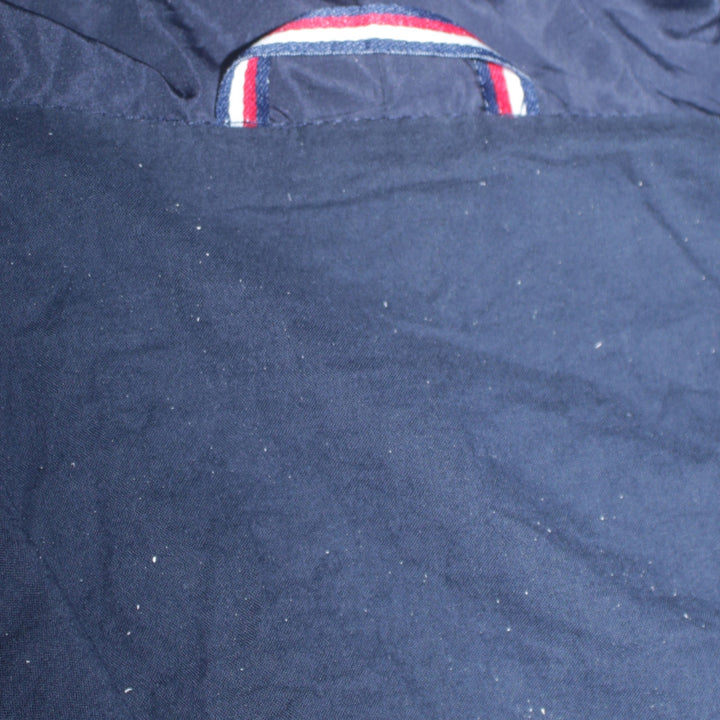 Tommy Hilfiger, Tommy Hilfiger jacket, Tommy Hilfiger windbreaker, Tommy Hilfiger hooded jacket, Tommy Hilfiger colour block, navy white red jacket, tricolour jacket, men’s Tommy Hilfiger, men’s hooded jacket, men’s windbreaker, men’s small jacket, small size jacket, polyester shell jacket, cotton lined jacket, lightweight jacket, casual outerwear, zip up jacket, full zip windbreaker, elasticated cuffs, elastic hem, chest zip pocket, side pockets, colour block windbreaker, navy jacket men, red and navy jacket, white panel jacket, Hilfiger flag detail, pre-owned Tommy Hilfiger, second hand Tommy Hilfiger, classic Tommy jacket, everyday jacket, casual street jacket, outdoor jacket, festival jacket, shell jacket, lined windbreaker, men’s casual coat, small men’s outerwear, branded men’s jacket, logo detail jacket, timeless colour block, hooded outerwear, spring jacket, autumn jacket, layering piece, vintage Tommy Hilfiger style
