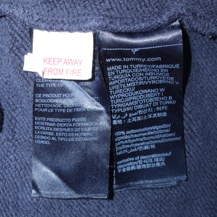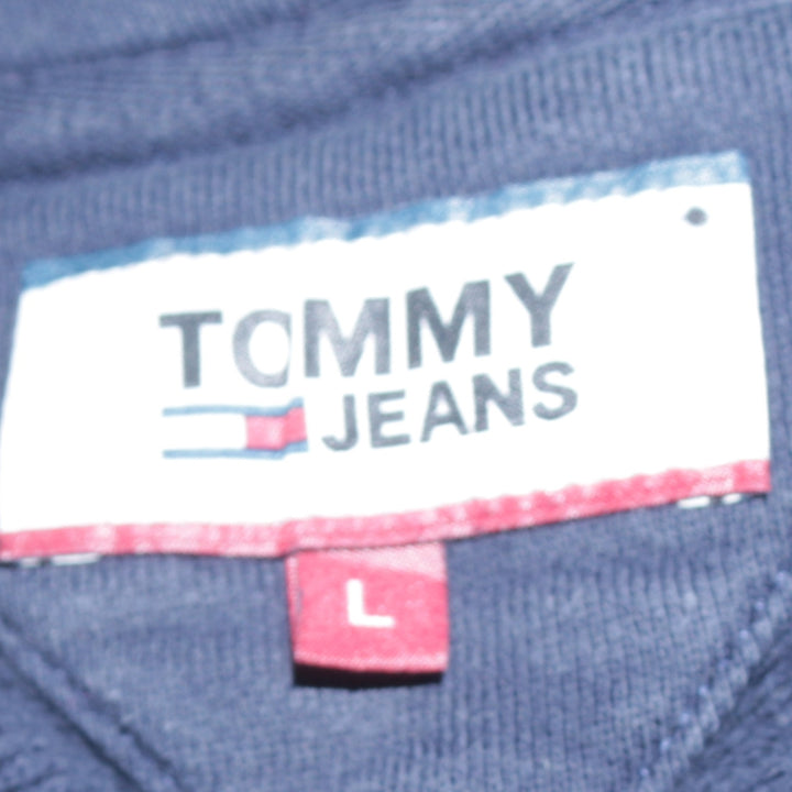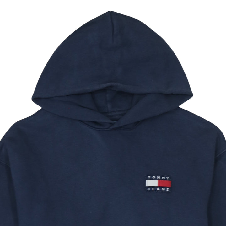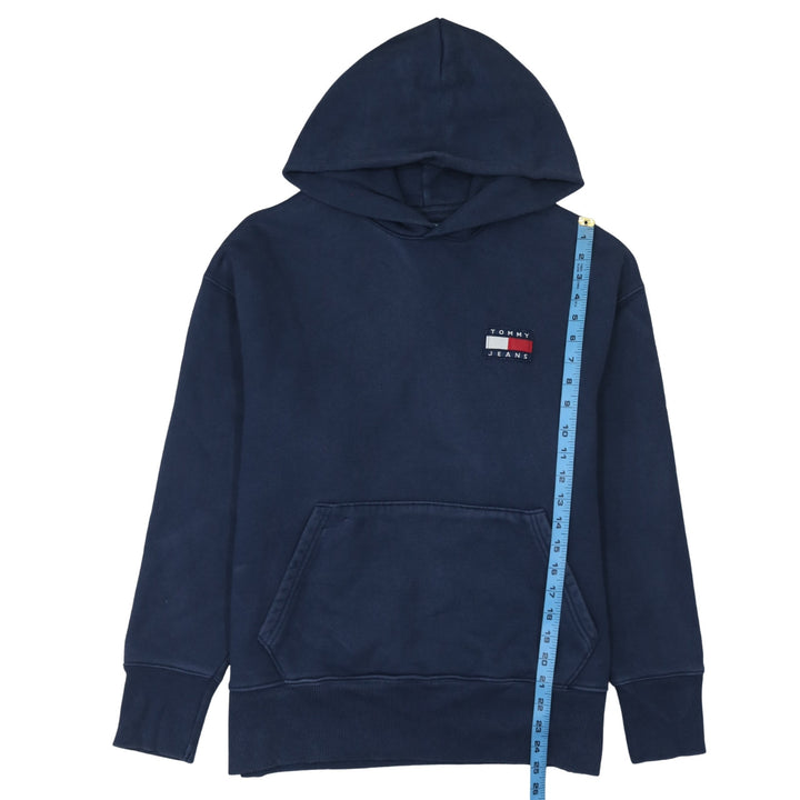 Tommy Jeans Navy Blue Hoodie Women’s Large Embroidered Chest Flag Logo Front Pocket Sweatshirt