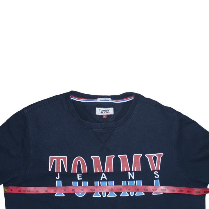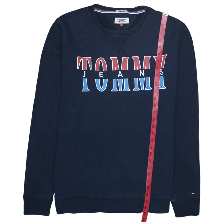 Tommy Jeans Navy Blue Sweatshirt Men's Large Printed Logo Crewneck Pullover Top